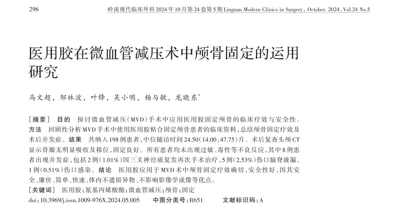 1978年,北京福愛樂科技發展有限公司創始人田霞,高級工程師,享受國務院特殊津貼、有突出貢獻專家,承擔國家65 - 95重點科研項目課題,研制出α-氰基丙烯酸正辛酯系列醫用膠,獲得國家、省、市科技獎28次。1991年實現科研成果轉化,填補國家醫用膠標準空白,為醫用膠在中國臨床醫學上的應用奠定了堅實的基礎。2001年 ,北京福愛樂科技發展有限公司在北京中關村高新技術開發區成立 ,是一家集生物化學、醫用高分子材料產品研發、生產、銷售為一體的擁有獨立自主知識產權的*********高新技術企業。